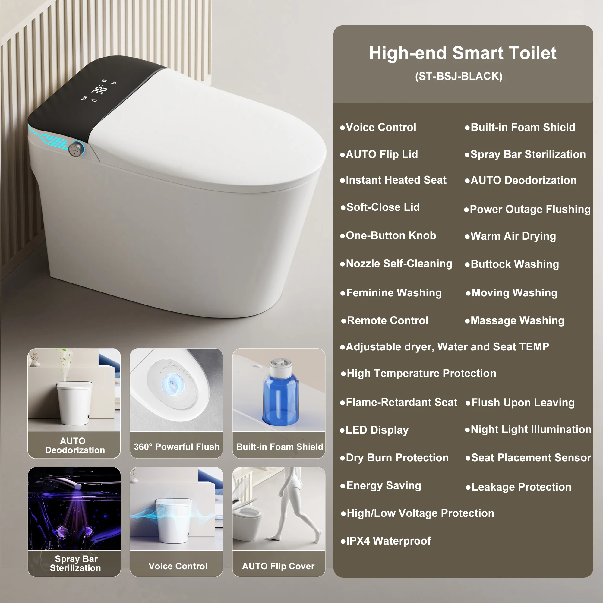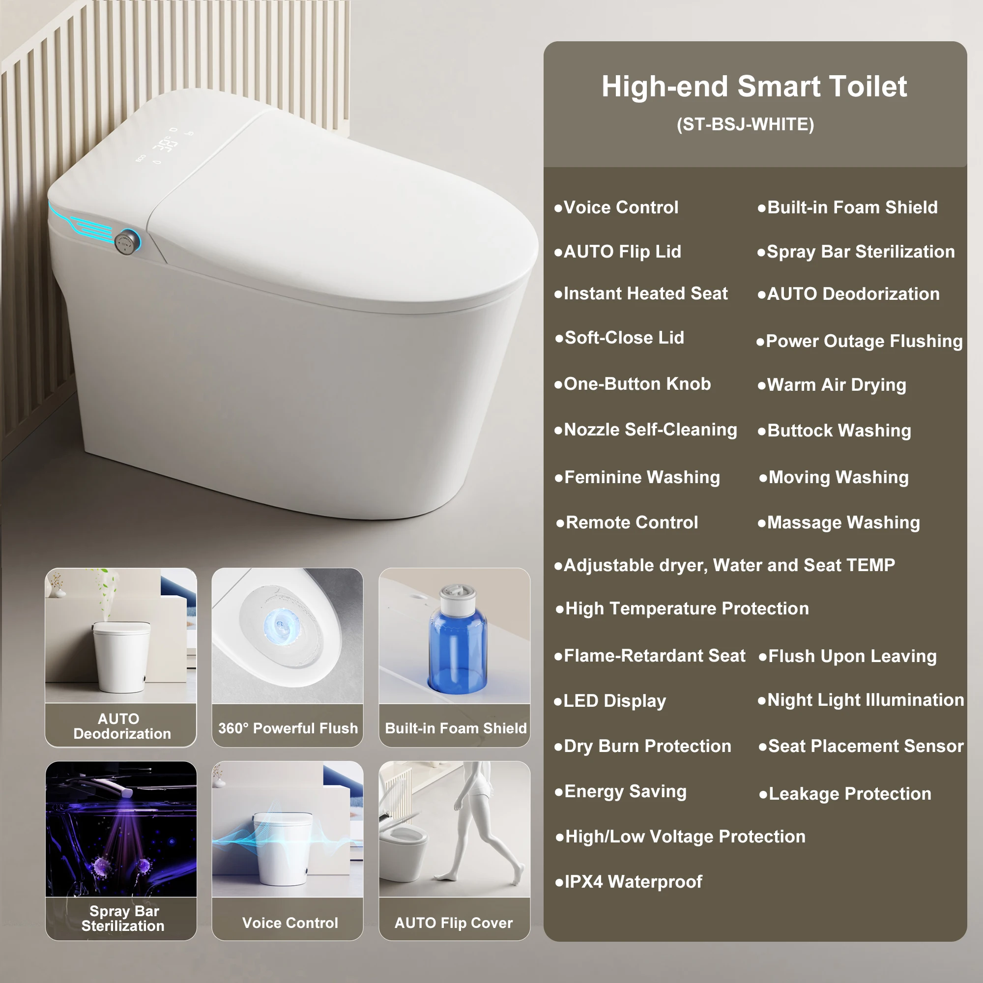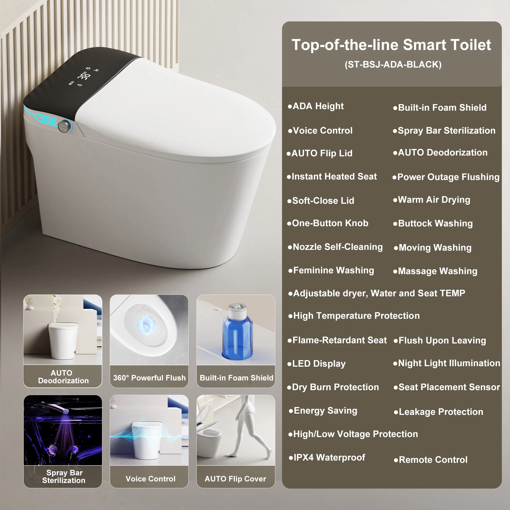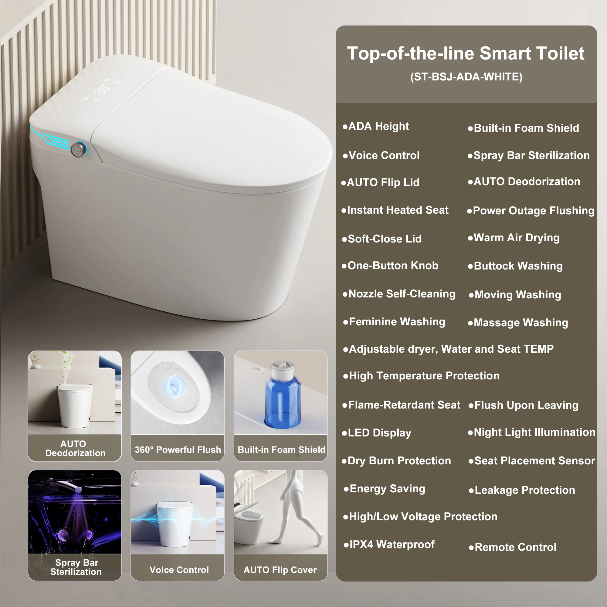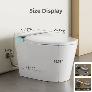 Included Components: Toilet, remote control, manual, angle valve, flange, screws, wax ring, and 2*batteries